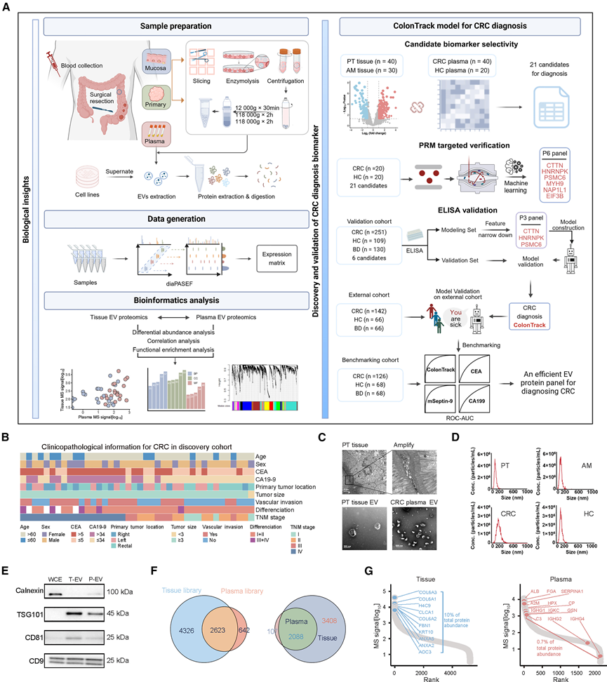 文献解读|Cell Rep Med(11.7):肿瘤和血浆细胞外囊泡的综合蛋白质组学分析确定了结直肠癌的诊断生物标志物