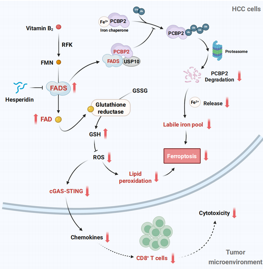 一系列实验证明橙皮苷诱导的铁死亡是通过抑制FADS介导的,显示出橙皮苷强大的抗肿瘤效果,突出了其作为HCC治疗候选物的潜力。