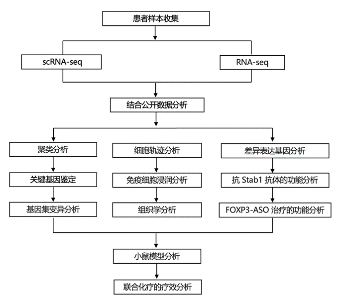 FOXP3 抑制和/或阻断 STAB1 可改善两种同源小鼠模型的化疗反应并延长生存期