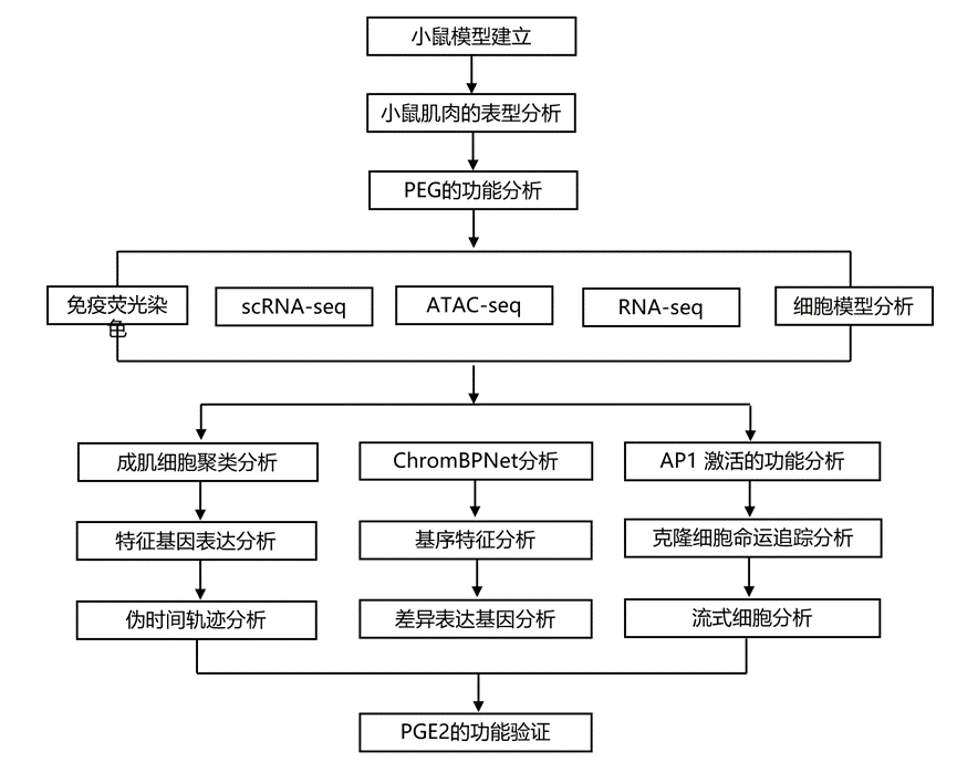 本研究发现衰老的 MuSC 会减弱PGE2-EP4 受体信号传导,从而导致早熟定型和有丝分裂灾难。PGE2 治疗可改变染色质的可及性,并克服衰老 MuSC 功能失调的命运轨迹,提高细胞活力并触发细胞周期重新进入。本研究利用神经网络模型来学习驱动可及性变化的转录因子的复杂逻辑。经 PGE2 治疗后,检测到转录因子在 CRE 和 E-box 基序位点的结合增加,而在 AP1 基序位点的结合减少,从而克服了随年龄增长而发生的变化。短期暴露于 PGE2 可增强衰老 MuSC 移植后的长期再生能力。令人惊讶的是,在肌毒素或运动引起的损伤后注射 PGE2 可以克服衰老的生态位,从而增强内源性组织驻留 MuSC 的再生功能并增加强度。