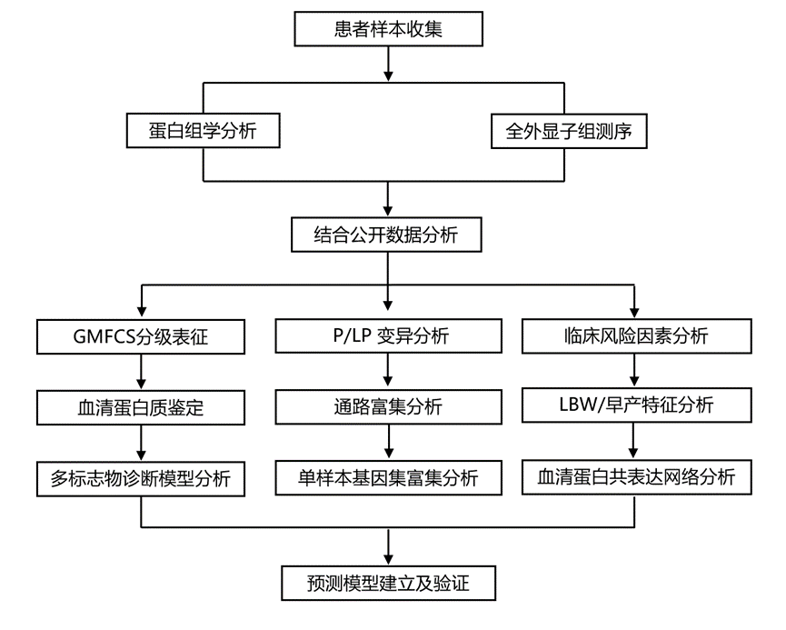 本研究对346例脑瘫患者和190例健康对照者的血清蛋白质数据进行了分析,并构建了一个包含10个蛋白质的多标志物检测组合,用于脑瘫的诊断。通过整合血清蛋白质组数据和全外显子组测序结果,本研究发现携带致病变异的脑瘫患者在蛋白质水平上表现出突触和钙信号通路的下调。此外,本研究还探讨了临床危险因素对蛋白质组的影响,发现低出生体重和低胎龄与脂质代谢紊乱相关。IGHV家族与较高的粗大运动功能分级系统(GMFCS)等级呈正相关。总而言之,本研究为脑瘫的早期诊断提供了一种有价值的工具,可作为标准临床和基因组评估的补充,并提示了与脑瘫发病机制相关的潜在分子机制,强调了遗传、环境和蛋白质网络因素之间的相互作用。